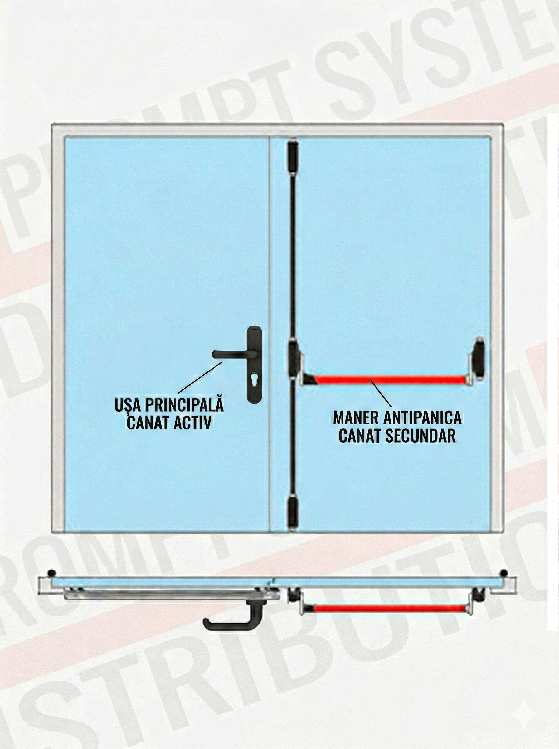 Kit Bară Antipanică CISA ALPHA – Set Complet pentru Canat Secundar (Ușă Aluminiu/Metalică)