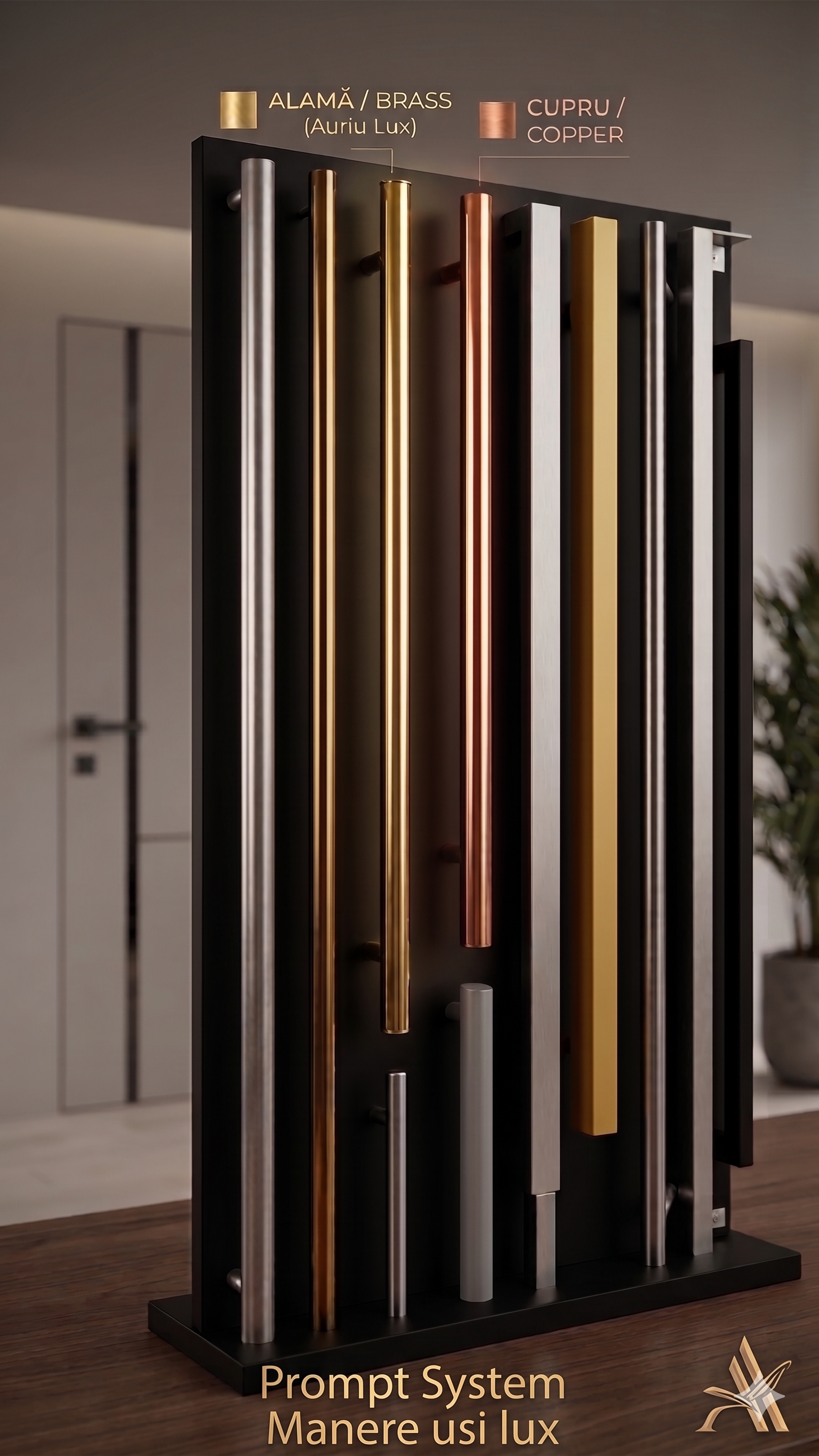 Dimensiuni la Cerere: Fabricăm mânere la orice lungime dorită, asigurând o potrivire exactă pe foaia de ușă.