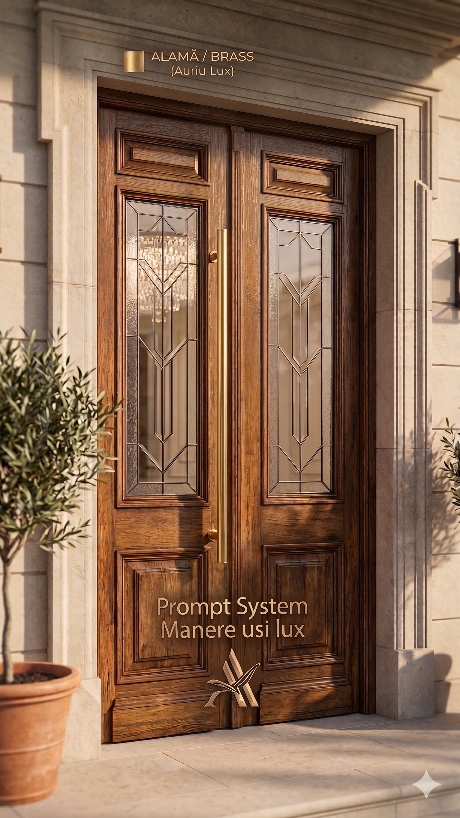 Transformă aspectul ușii tale cu un mâner tragător din alamă cu finisaj auriu lux. Spre deosebire de mânerele standard din comerț, produsele noastre sunt executate la comandă, oferindu-ți libertatea de a alege dimensiunea perfectă pentru uși de intrare din lemn, metal, aluminiu, PVC sau sticlă.