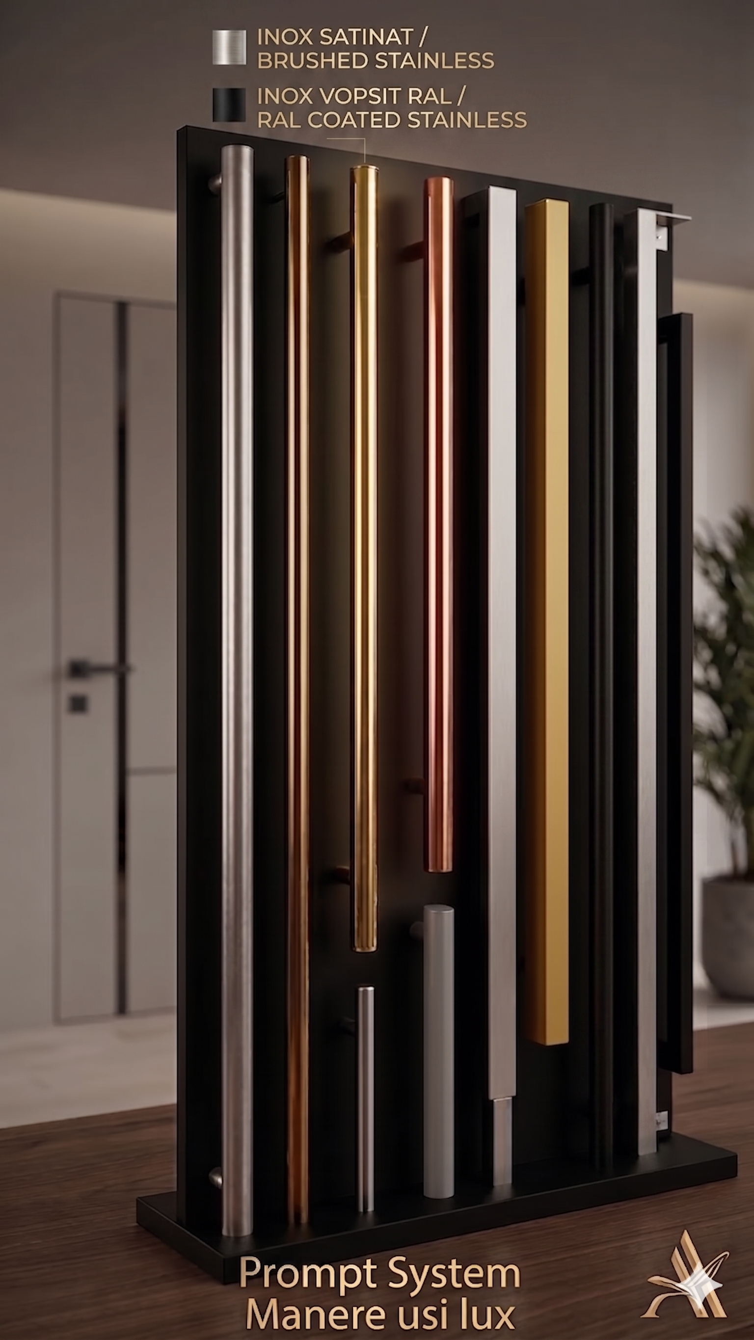 Inox Lucios (Oglindă): Pentru o strălucire de cristal, ideală pentru intrări de lux.